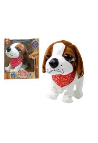 12. Interaktywny pies biało-brązowy na smyczy + buda